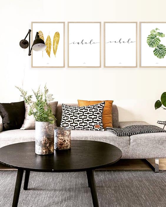 doradas, exhale, frase, hojas, inhale, monstera, negro, palabra, planta, pluma, plumas, verde, verdes